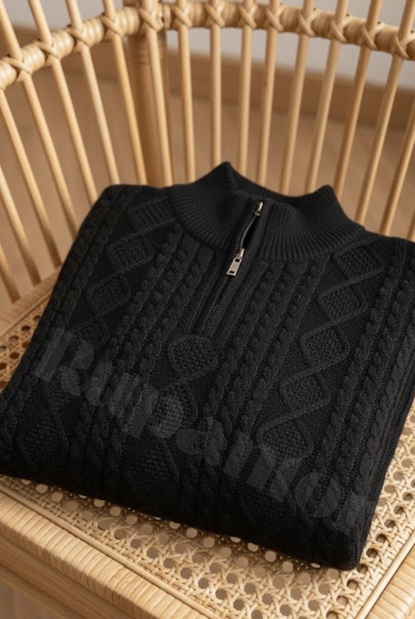 ✔ হাফ-জিপার হাই নেক – ঠান্ডা বাতাস প্রুফ